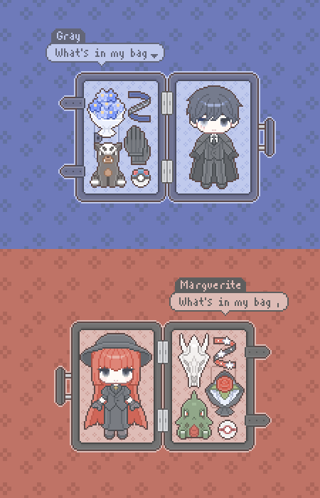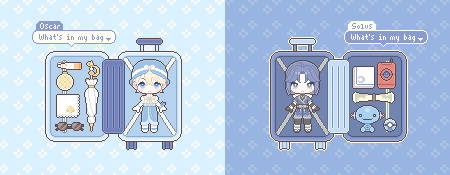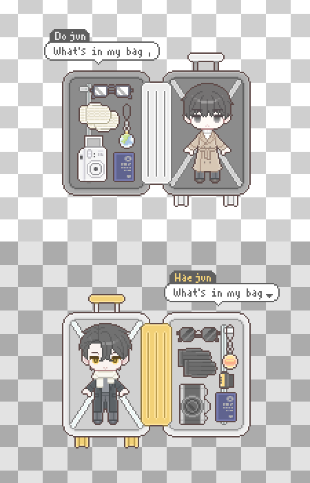 이메일: 작업물을 전달 받을 이메일을 적어주세요. 캐릭터 이름(영문) / 캐릭터 자료: 도트 스타일 특성상 간략화 될 수 있는점 참고 부탁드려요! 전신 이미지가 필요하며, 의상이 잘 보이는 자료를 첨부해주세요. 필수로 캐릭터의 표정도 함께 기입해주시길 바랍니다. 또한 필수는 아니나 정면을 바라보고 있는 두상을 첨부해주시면 작업에 용이합니다. 복잡한 의상일 시 추가금이 발생합니다. 가방 옵션: 1.캐리어, 2.빈티지 중 택1 / 색상 / 좌우반전 여부 소지품 자료: 최대 5개. 이미지 자료가 필요합니다. 아주 간단한 소지품의 경우 글서술도 가능하나 이 경우 추후 해당 소지품 대한 수정요청을 받지 않습니다. 또한 복잡한 형태의 소지품일 경우 추가금이 발생합니다. 포켓몬이나 동물(혹은 인형) 신청시 2000원이 추가됩니다. 배경 옵션 및 배경 색상 : 연한 색상을 추천합니다. 2인 이상 신청시 어떻게 배치하여 편집할지 함께 적어주세요. (예:A캐릭터를 아래에 배치) 애니메이션 유무 (+추가시 인당 2000원) : 눈 깜빡이와 말풍선의 화살표가 움직입니다. O/X 기타사항: 추가 문의사항이 있다면 이곳에 기입해주세요! |