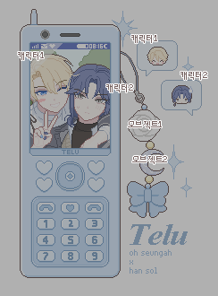 | 이메일: 작업물을 전달받을 이메일을 적어주세요. 페어명: 신청하시고자 하는 페어의 페어명을 기입해주세요. 캐릭터1,2 자료: 도트 특성상 너무 복잡한 의상은 간략화 될 수 있는 점 참고 부탁드려요! 흉상까지의 이미지와 표정 자료(필수)가 필요합니다. 캐릭터 이름: 캐릭터1 이름 / 캐릭터2 이름 페어명 밑에 순서대로 들어갑니다. 오브젝트: 오브젝트1, 2에 들어갈 아이템 이미지를 첨부해주세요. 너무 복잡한 오브젝트의 경우에는 추가금이 발생할 수 있습니다. 휴대폰 색상: 색상은 연하게 들어갑니다. 테마 색상: 테마 색상 최대 2개. 배경과 키링 구슬, 페어명 색상으로 사용 됩니다. 기타사항: 추가 문의사항이 있다면 이곳에 기입해주세요! |